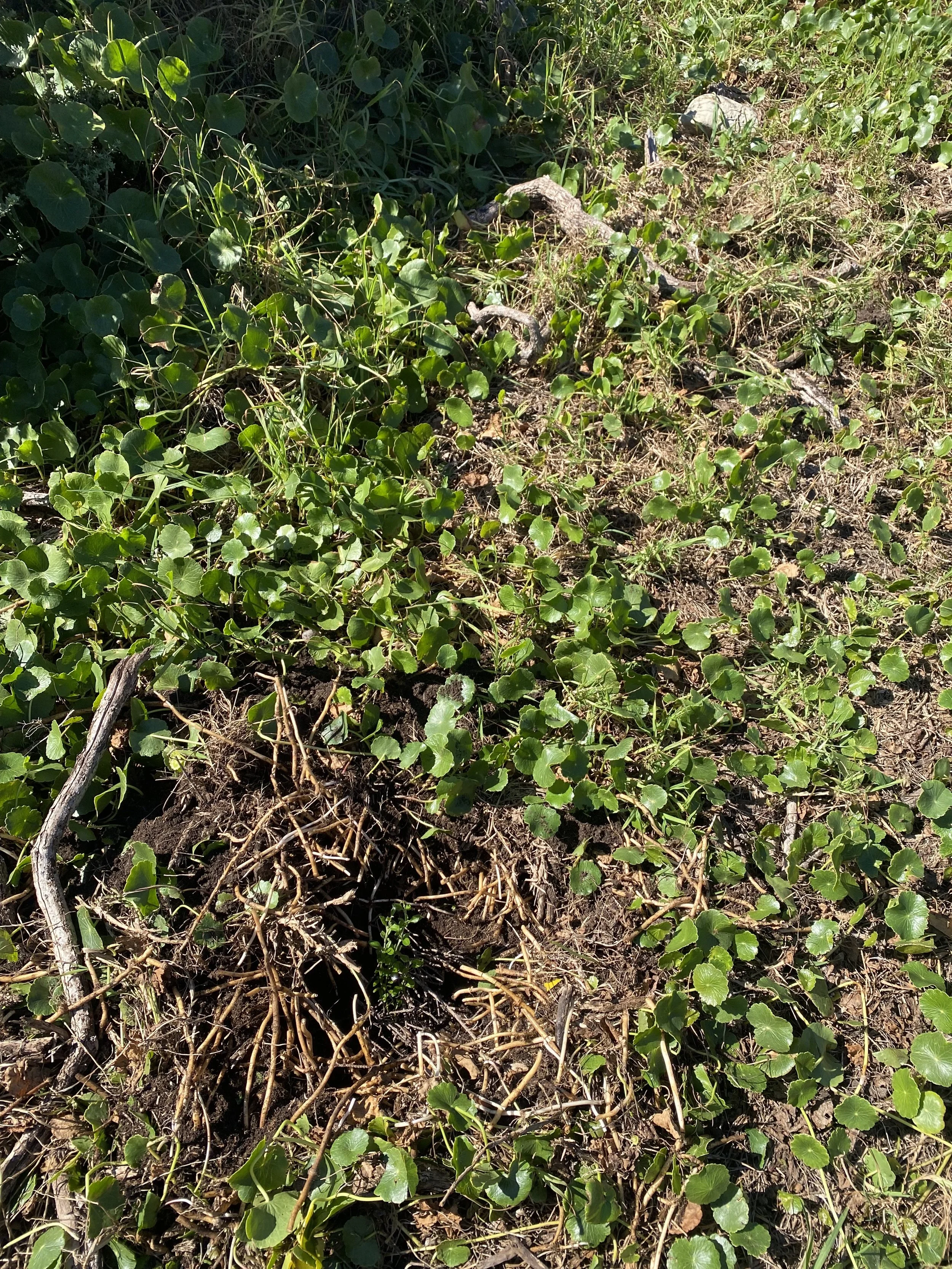 Despite the spread of Hydrocotyle bonariensis due to recent rains, we’re confident our new plantings will thrive and outcompete, as it’s the growing season.