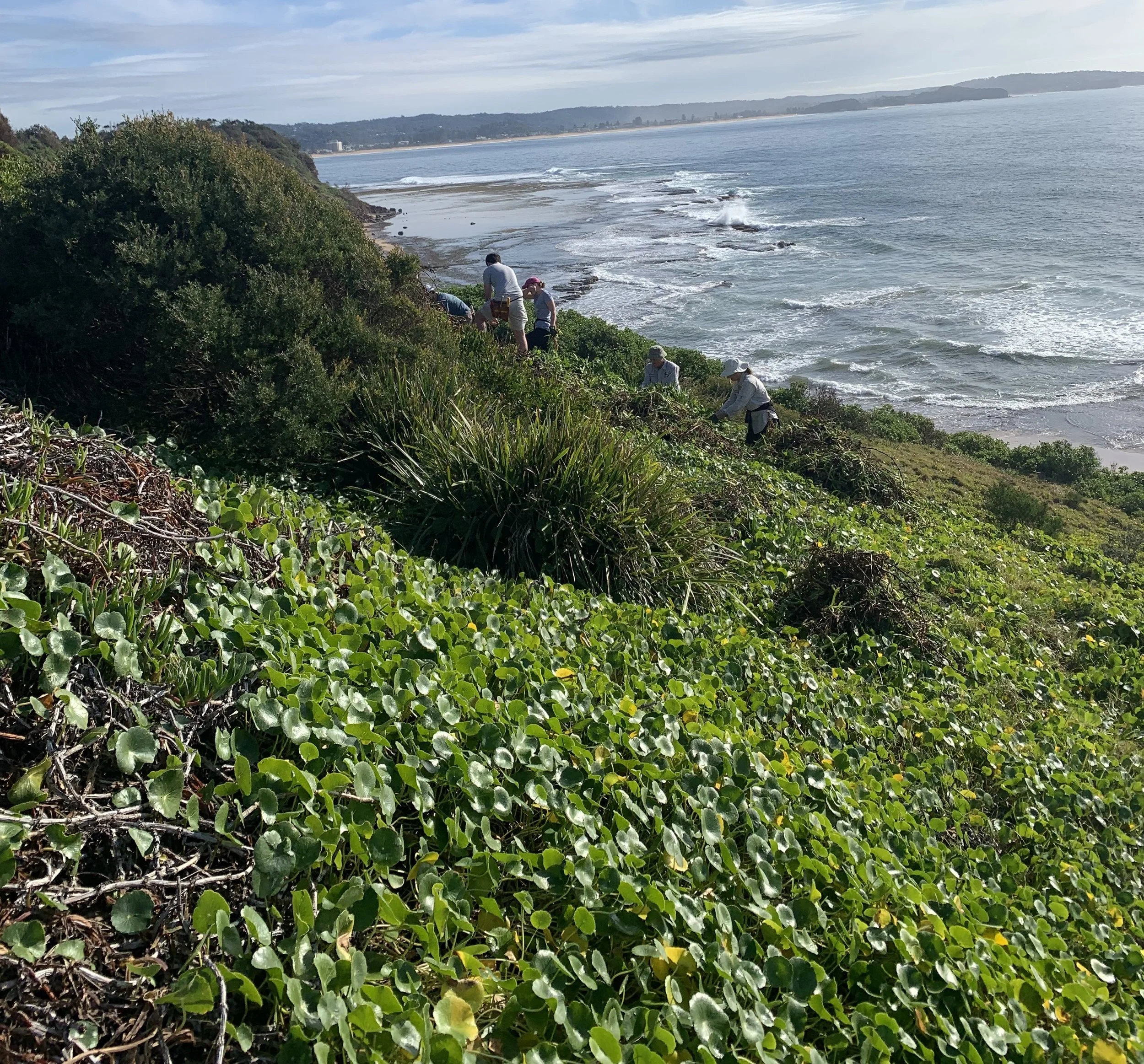 Des and Alex immediately began tackling a patch of Bidens Pilosa, followed by the discovery of Turkey Rhubarb further east—recent invaders from the dunes behind Long Reef.