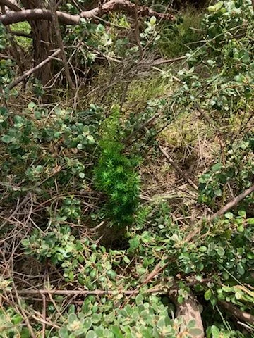 Merrilyn was on the move across the site on her own Asparagus Fern mission. It’s everywhere — about one every step or two — but thanks to her vigilance, we’re catching many of them early while they’re still small.