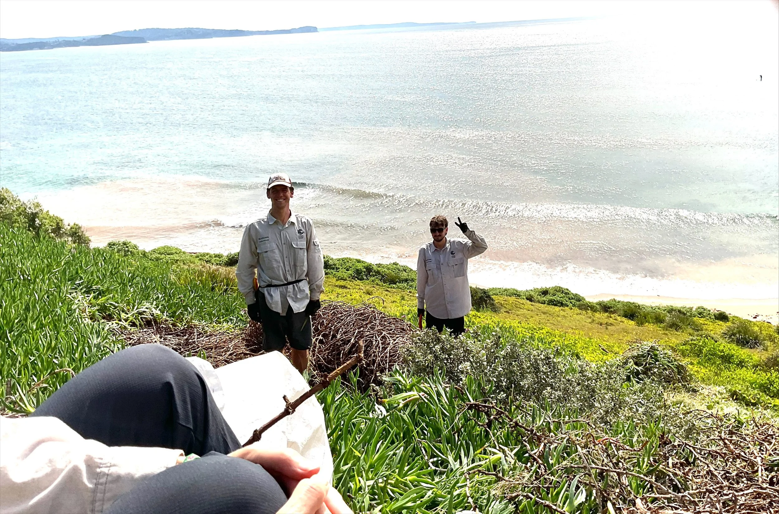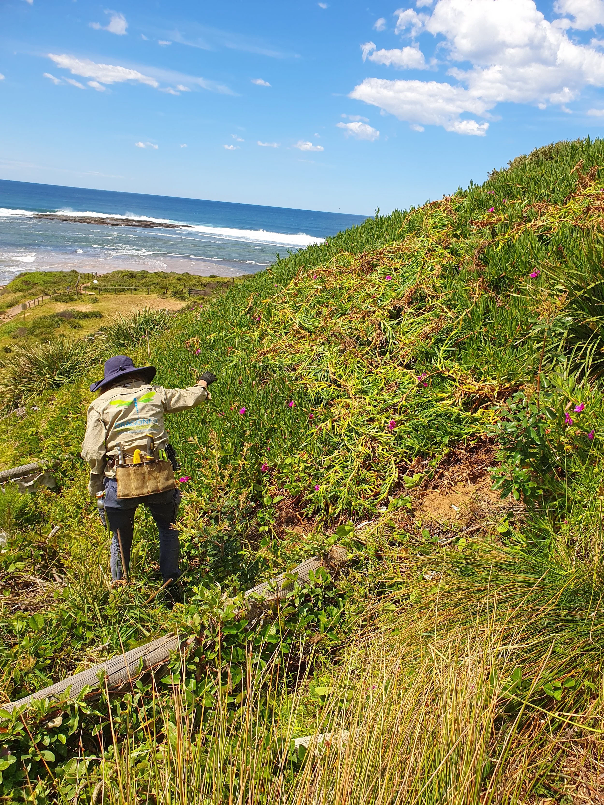 Gen and Brad worked down in the gully, cutting back Bitou where full removal isn’t possible due to the fragile cliffs, and continued clearing Pigface from our planting zones.