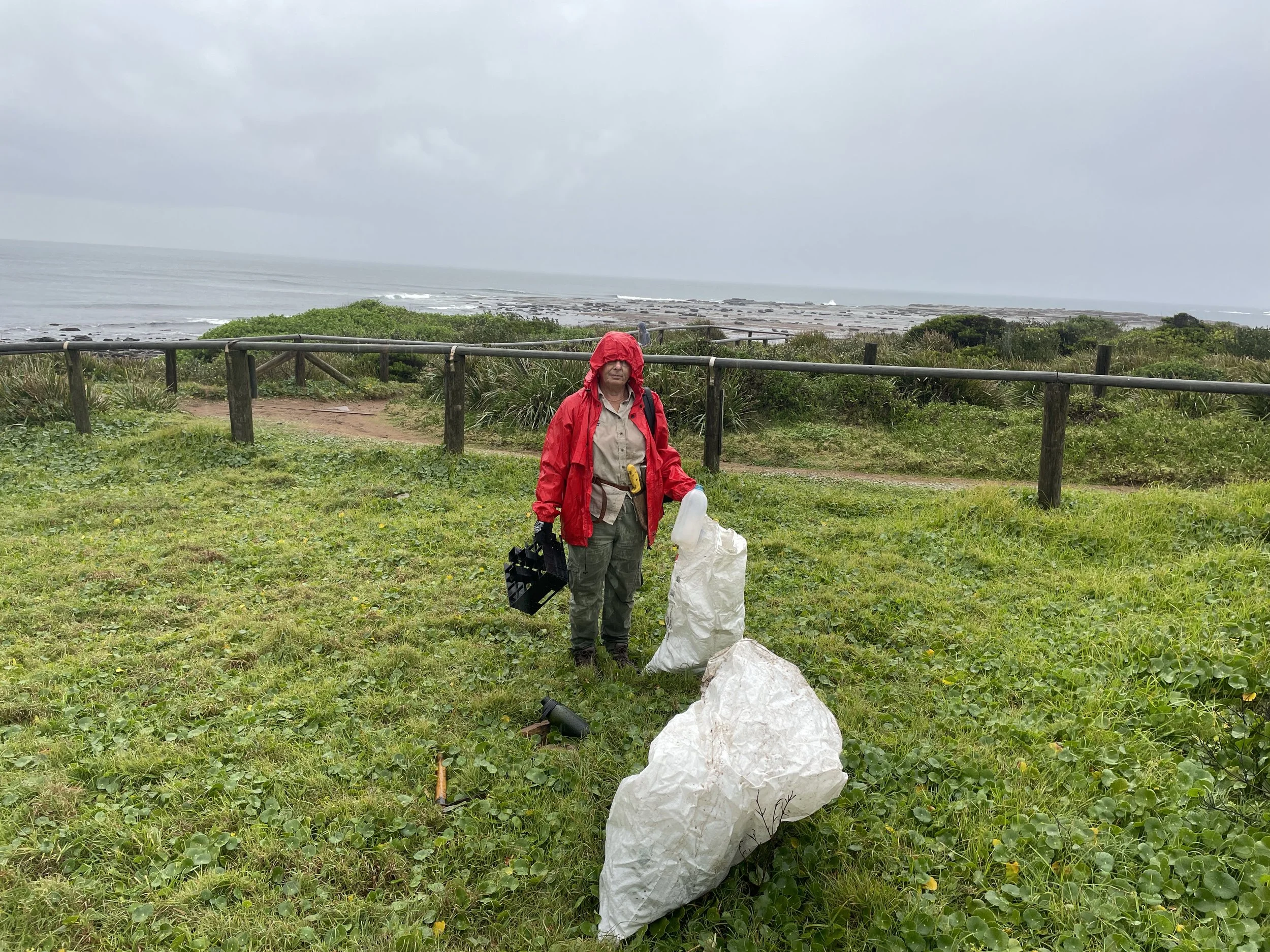 Kathy, Ivana and Lisa created a new demarcation line going east to west along the southern slope of the eastern dune area. This line is to stop the kikuyu from the flat area of the eastern dunes moving into our beautiful Themeda grassland, which it is just starting to do. Aim is to continue to work above the line to make sure we get all the kikuyu out of there… and one day hopefully, we can attack the kikuyu in the flat.