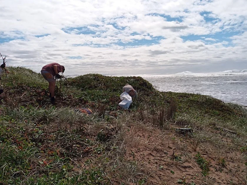After morning tea most went back to their favourite spot, but three moved to the eastern dunes, targeting kikuyu, seasonal weeds and on the far eastern side removing pigs face off Themeda and Ehrharta.
