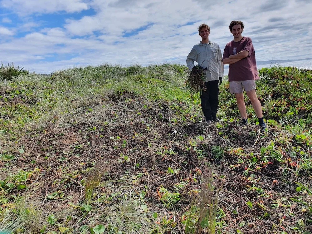 In the morning, Elias our supervisor for this month from Dragonfly Environmental along with Josh, Alex and Rohan removed more of the non-native pig’s face on the steep south western slope, whilst Claire, John and Issy worked on the flat targeting weeds, but mainly burr medic. Des, Brad and Merrilyn all worked on the western side removing more bitou. Des and Merrilyn had around a dozen plants – mainly creepers to plant around the area.